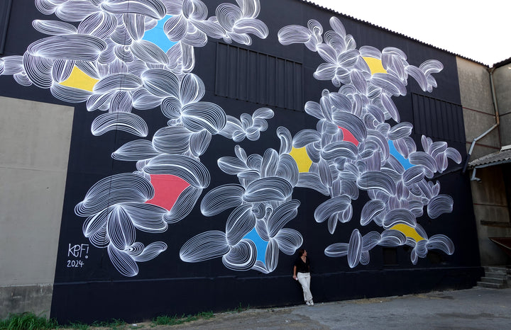 Born in Germany, KEF! has created murals, installations, and paintings across major galleries and cities around the world. His work blends movement, harmony, and spirituality to reflect an ever-evolving relationship between humanity and the universe. His signature line art embodies peace and energy drawn from the natural rhythm of life.